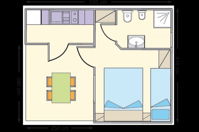 Bungalow indipendenti in muratura, con isolamento termico ed acustico. Possono ospitare fino a 6 persone e dispongono di area giorno con angolo cottura attrezzato, bagno con doccia, 1 o 2 camere da letto e veranda esterna attrezzata.